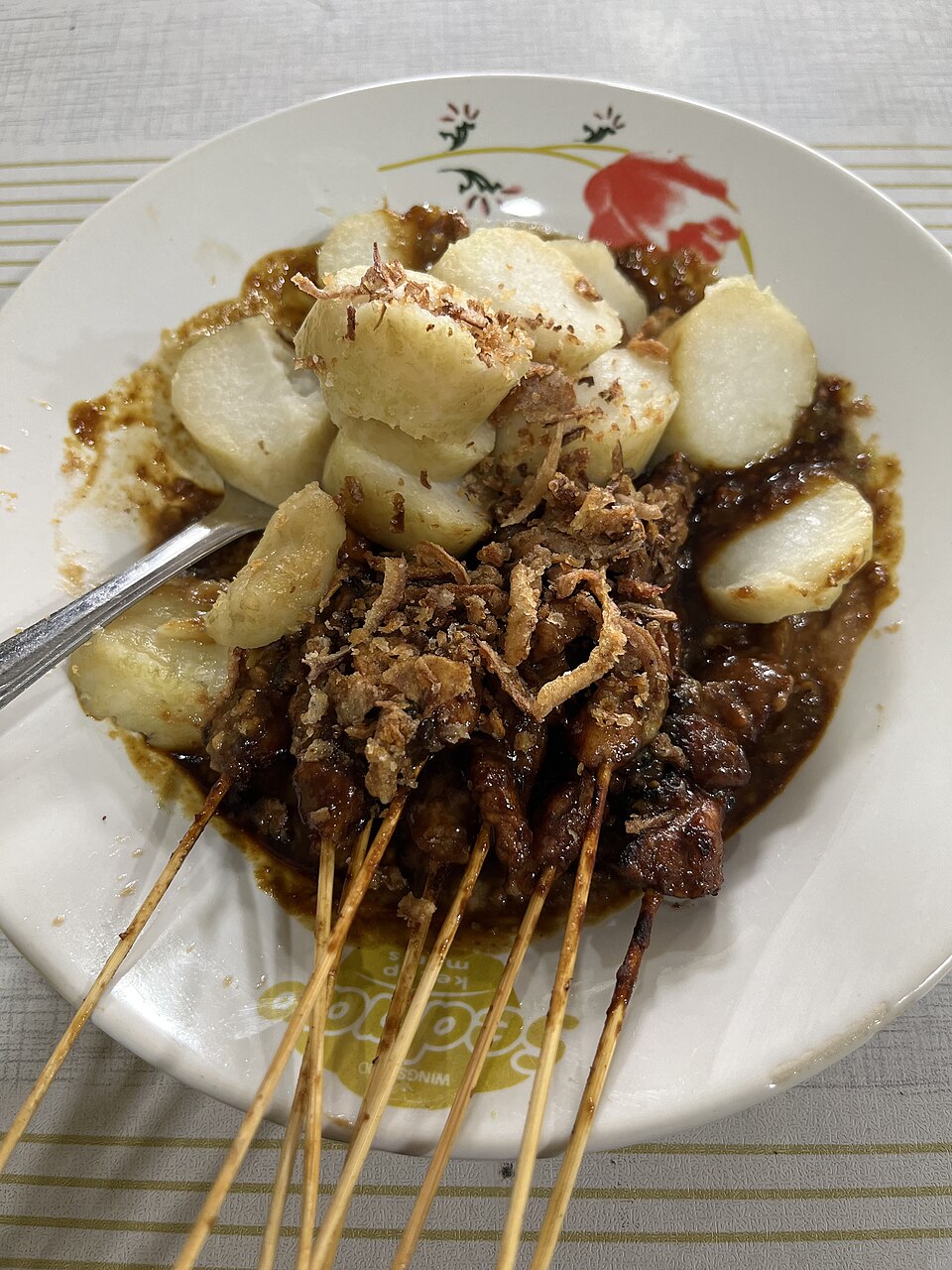 - 6.Pile the skewers onto a plate with the peanut sauce in a bowl alongside, the pickle, and some lontong or steamed rice if you want to make it a full meal. Most of the time the skewers disappear before anyone sits down, which is a problem I've learned to plan for by making more than I think I need.
